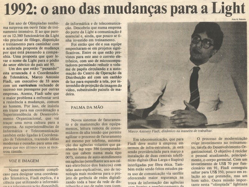 - Dirigiu a área de Telemática da Light S/A (segunda maior distribuidora de energia elétrica do país);